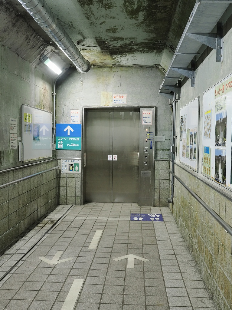 エレベータでダムの下に降りてきた所。突然、寒くなります。