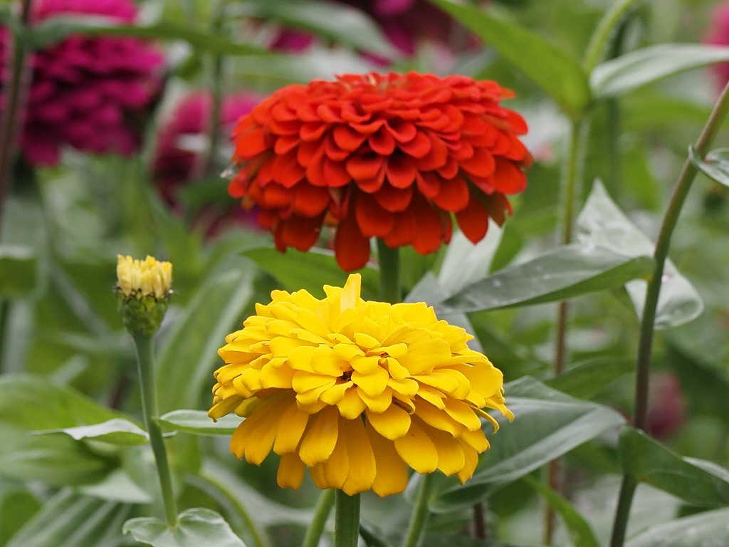 | 別名 | ヒャクニチソウ(百日草) シャッポバナ チョウキュウソウ(長久草) 英名 コモン・ジニア、ユース・エンド・オールドエイジ(Youth ands old age 若者と老人) |